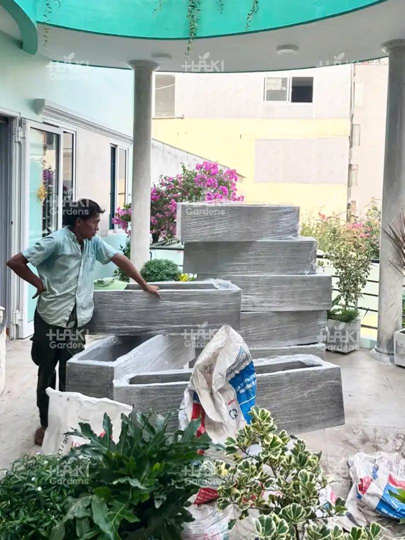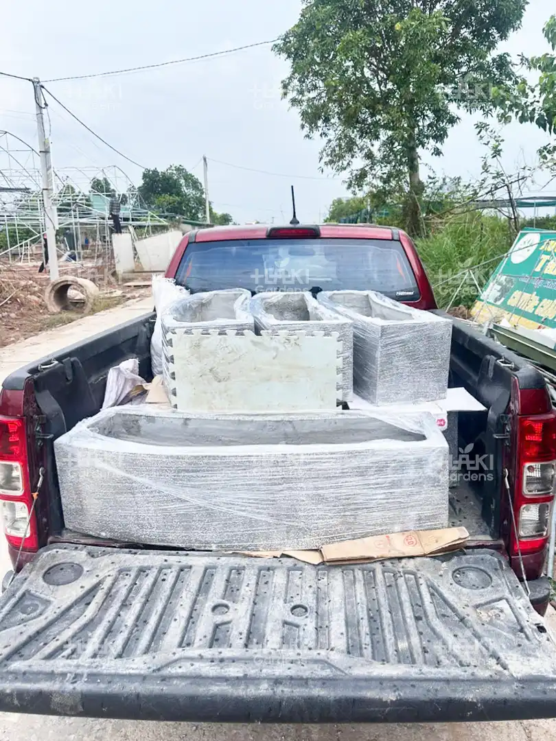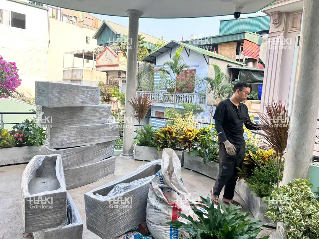 Ngay sau khi đơn hàng chậu chậu xi măng, đặt khuôn riêng theo kích thước không gian được hoàn tất, Haki nhanh chóng vận chuyển đến nhà anh Hùng. Song song đó, các công đoạn chuẩn bị khác cũng được triển khai: