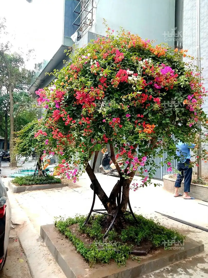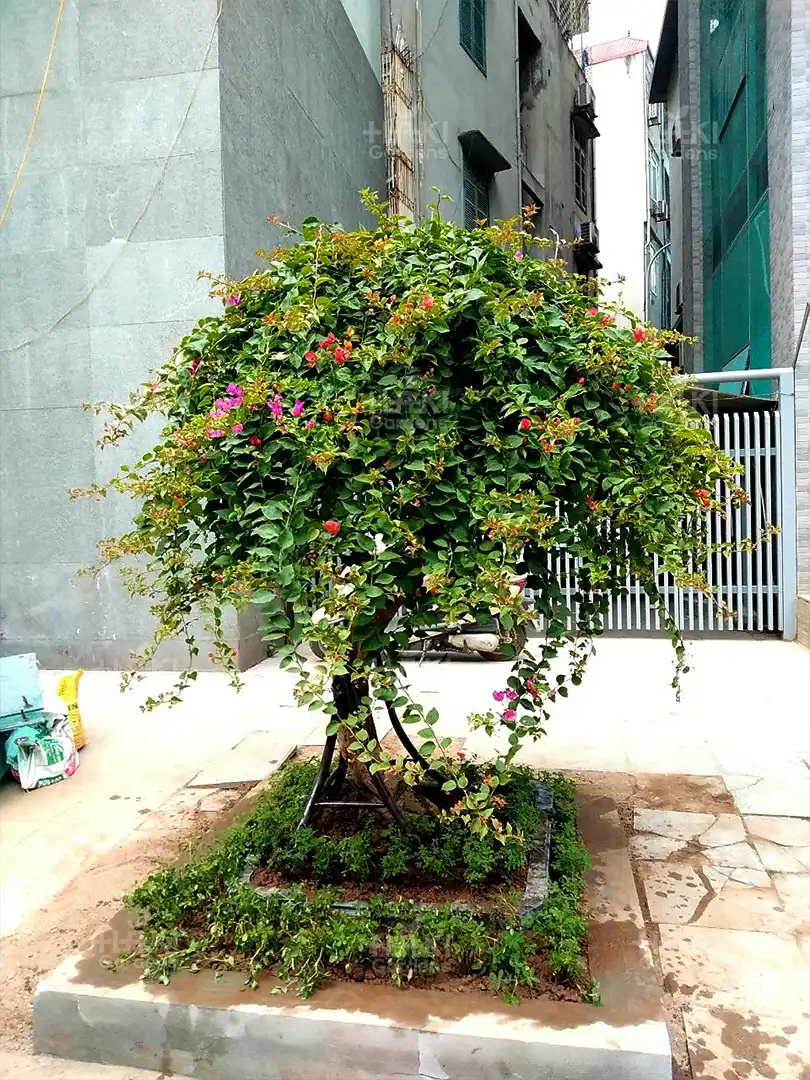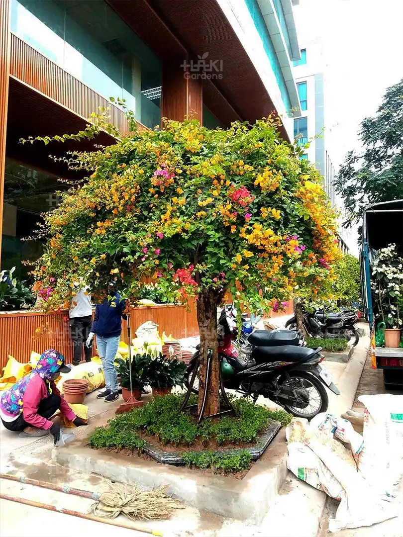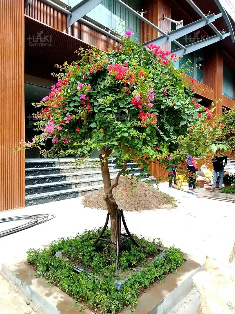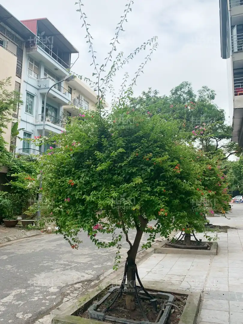 Sau khi trao đổi, chúng tôi biết được mặt tiền của toà nhà hiện vẫn trống và có nhu cầu trồng một loại cây có tính thẩm mĩ cao, thu hút. Vì vậy, Haki đã tư vấn và gợi ý về cây Hoa giấy – một loại cây có hoa mang nhiều loại màu sắc tươi sáng tượng trưng cho những may mắn, phát tài, phát lộc. Đặc điểm hình dáng của cây hoa giấy có nhiều cành nên trông rất xum xuê chính vì vậy mà trong phong thủy, loại cây này tượng trưng cho sự đủ đầy, chở che, hạnh phúc vẹn tròn. Và Hoa giấy cũng là một loại cây tương đối dễ chăm sóc.