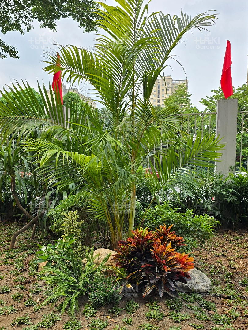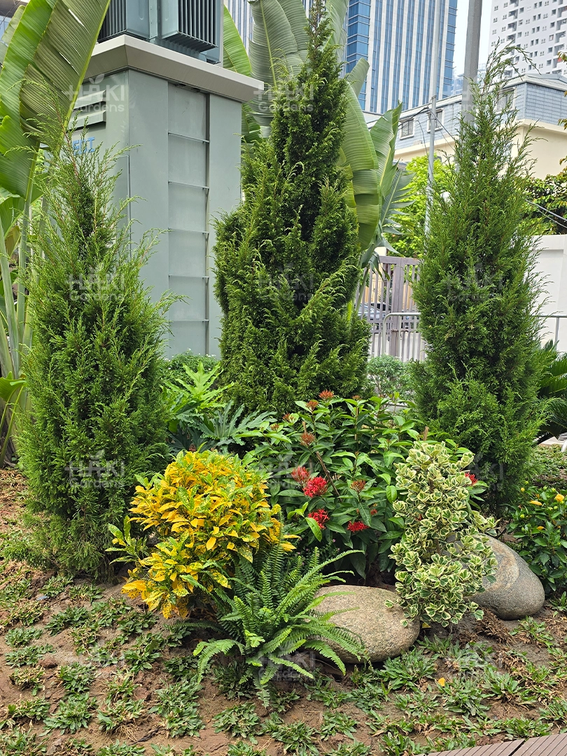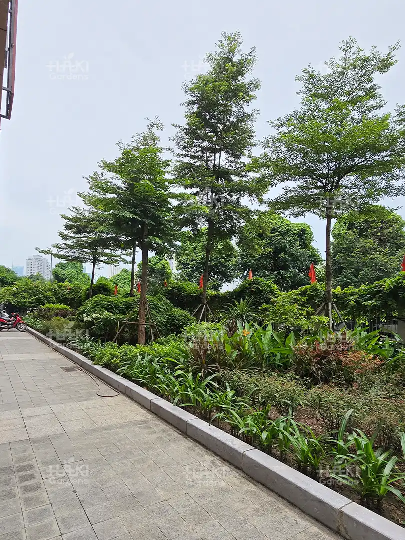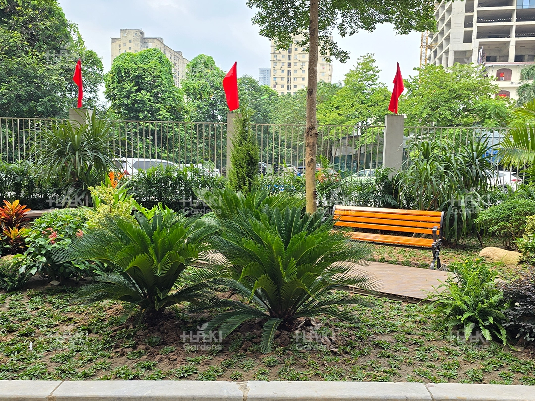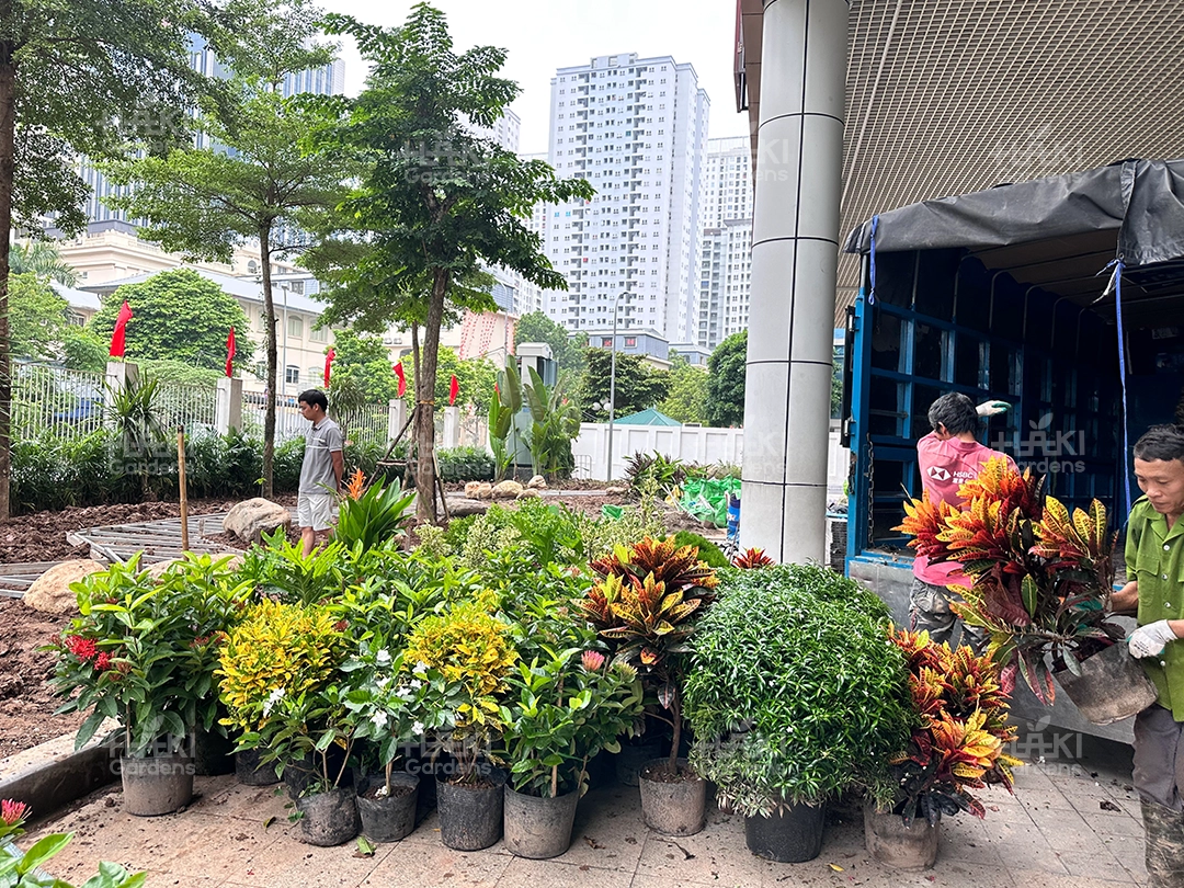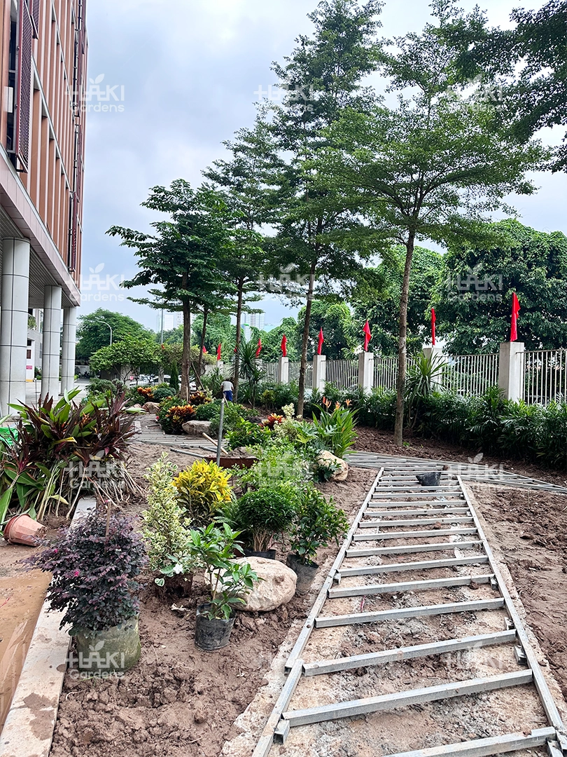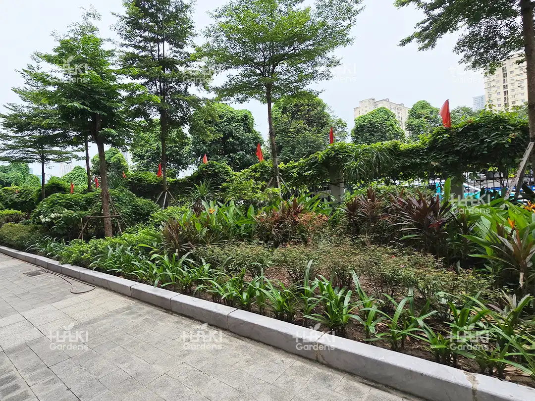 Cảnh quan Haki lựa chọn những loại cây bụi, cây thảm dễ chăm sóc, bền đẹp và an toàn cho môi trường học đường. Các loại cây này vừa tạo điểm nhấn cho khuôn viên, vừa mang đến sự tươi mát, hài hòa cho tổng thể.