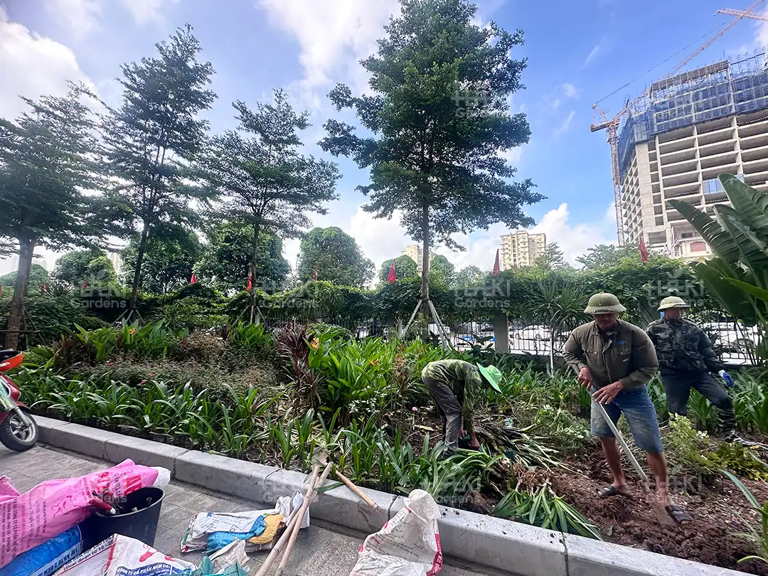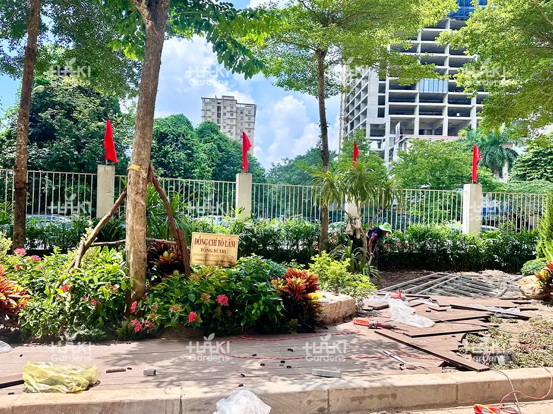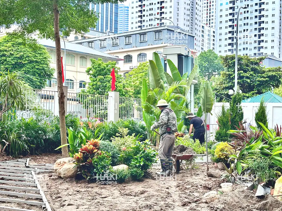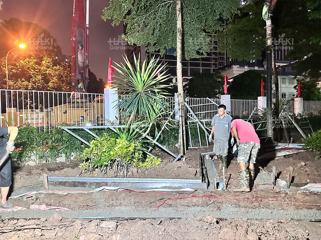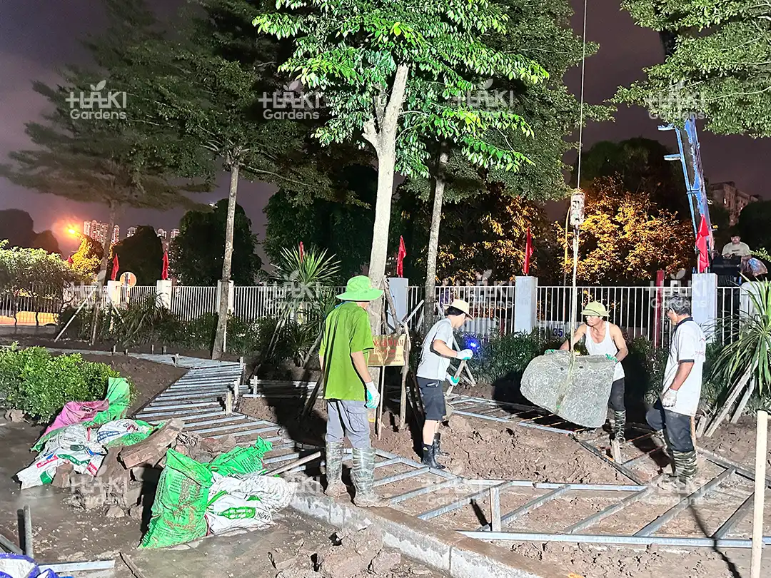 Nhờ sự chuẩn bị kỹ lưỡng này, quá trình thi công diễn ra suôn sẻ, đảm bảo chất lượng và thẩm mỹ của toàn bộ cảnh quan.