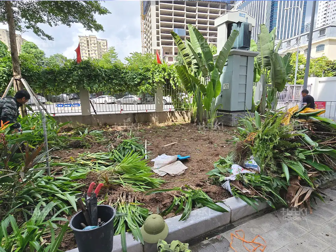 Qua quá trình khảo sát, đội ngũ kỹ thuật của Haki nhận thấy cần có sự chỉnh trang toàn diện, bao gồm việc giảm mật độ cây, tạo khoảng không gian thoáng và bổ sung thêm các yếu tố tiểu cảnh để hài hòa hơn.