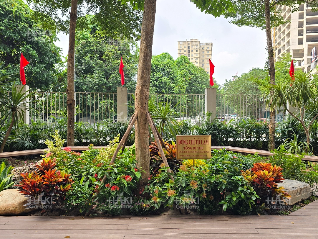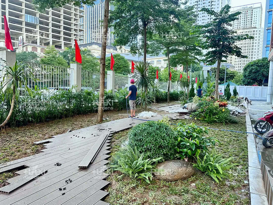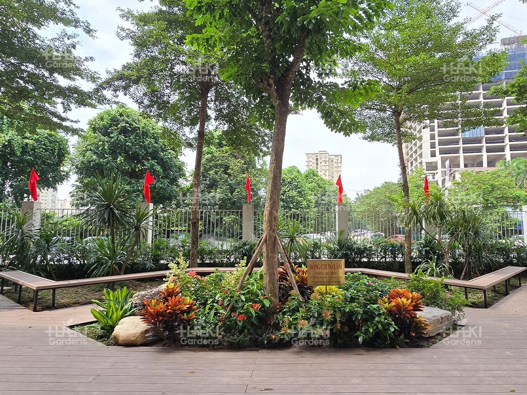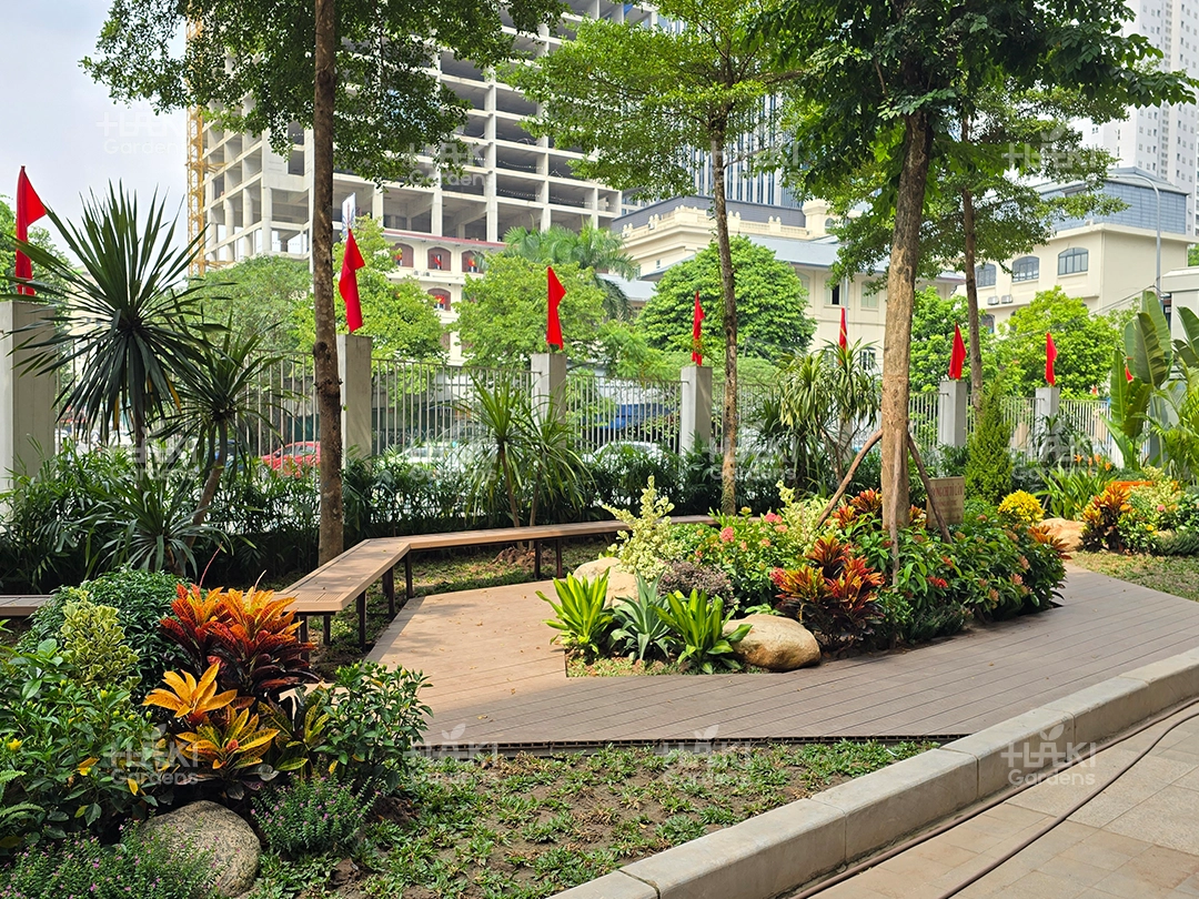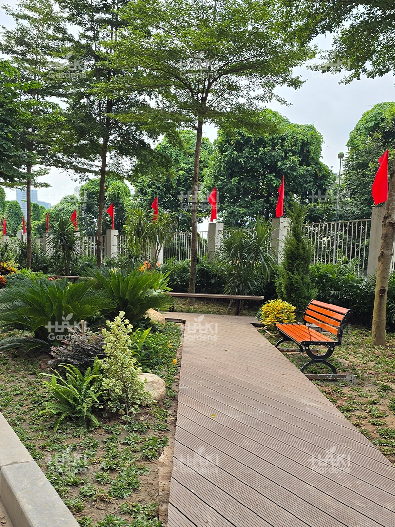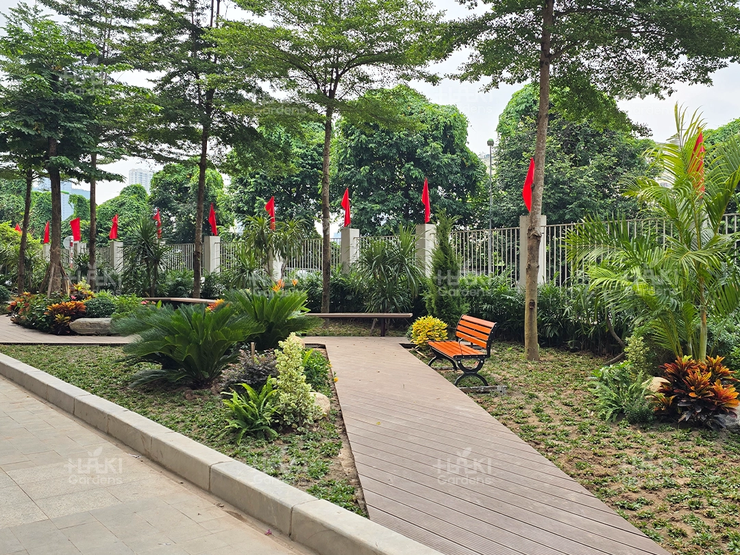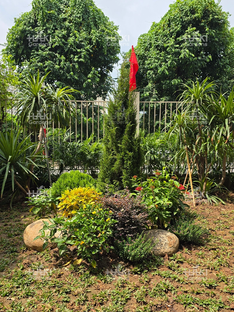 Đặc biệt, đội ngũ Haki luôn chú trọng từng chi tiết nhỏ, từ cách sắp đặt cây xanh đến việc phối màu hoa và tiểu cảnh, giúp không gian đạt tính thẩm mỹ cao.